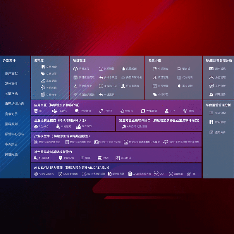 医疗器械产品上市前,,,要熟悉严格与繁复评审标准,,,整理分析监管机构指导文件中的海量信息。。企业急需一个智能化解决方案,,,,提升知识管理效率,,提高评审通过率,,,以提升其市场竞争力。。。
