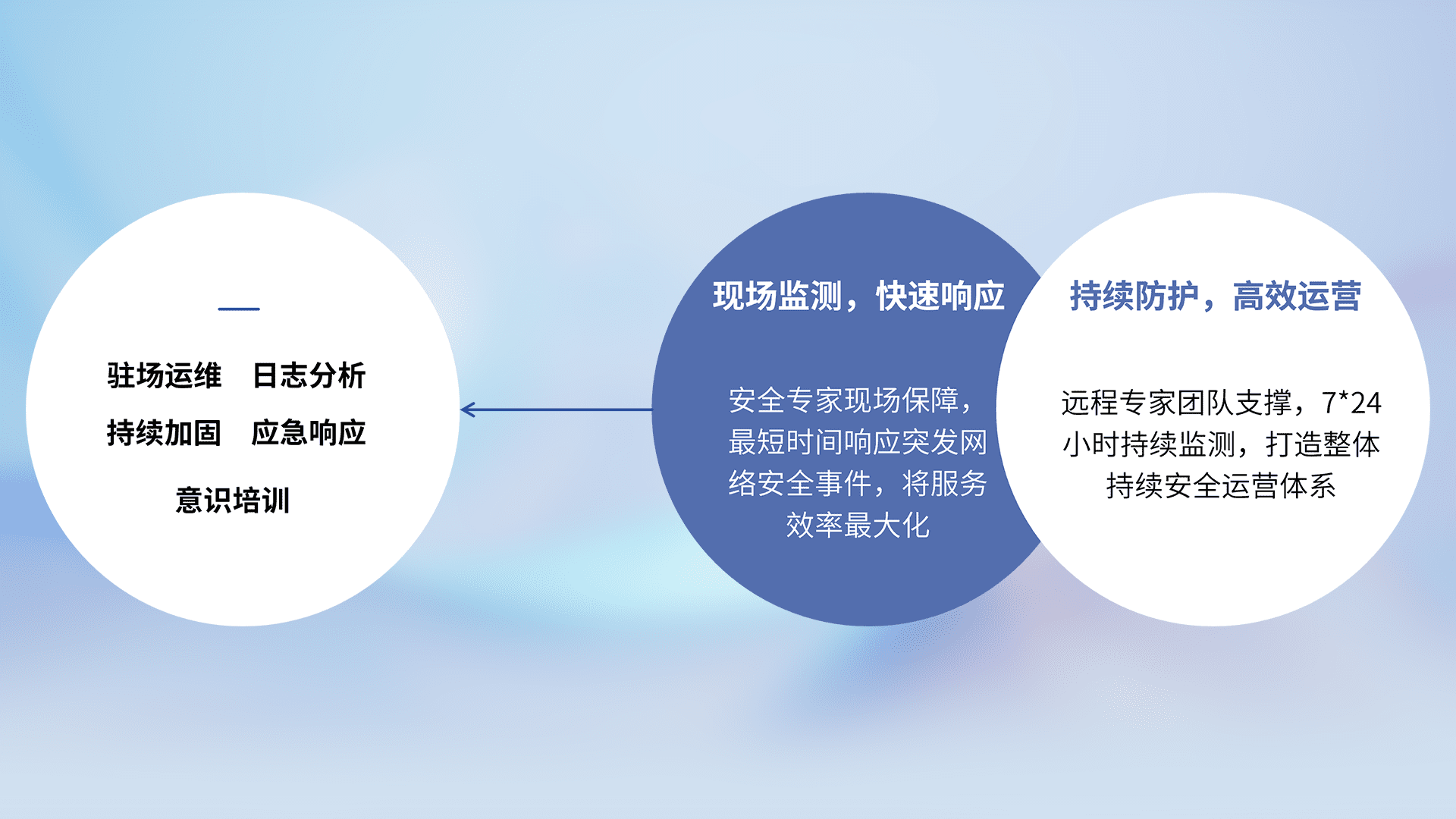 7X24小时持续监测安全事件,保持安全策略有效性,降低资产脆弱性风险,,,,精准拦截黑客攻击,,,减少被黑客利用的机会,,,,第一时间遏制,,降低损失。。。